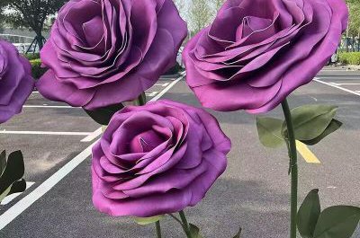 大型月季花雕塑 鍛造發(fā)光花卉雕塑 房地產(chǎn)花朵雕塑