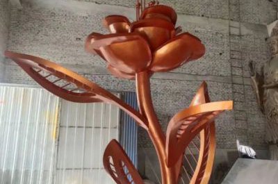 街頭玫瑰雕塑 大型別墅區(qū)擺件 鋼管雕塑
