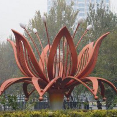 鏡面蓮花雕塑 烤漆大型花卉雕塑 彩繪水蓮花雕塑